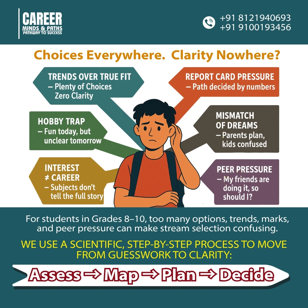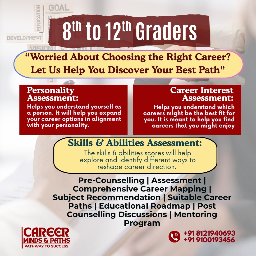 We are completely confused which subjects to choose for our child who is in 10th grade CBSE now. The counselling session has truly helped us a lot. The process of psychometric assessment is really a game changer for any student who is not sure about their career choices. Thanks to Career Minds & Paths.